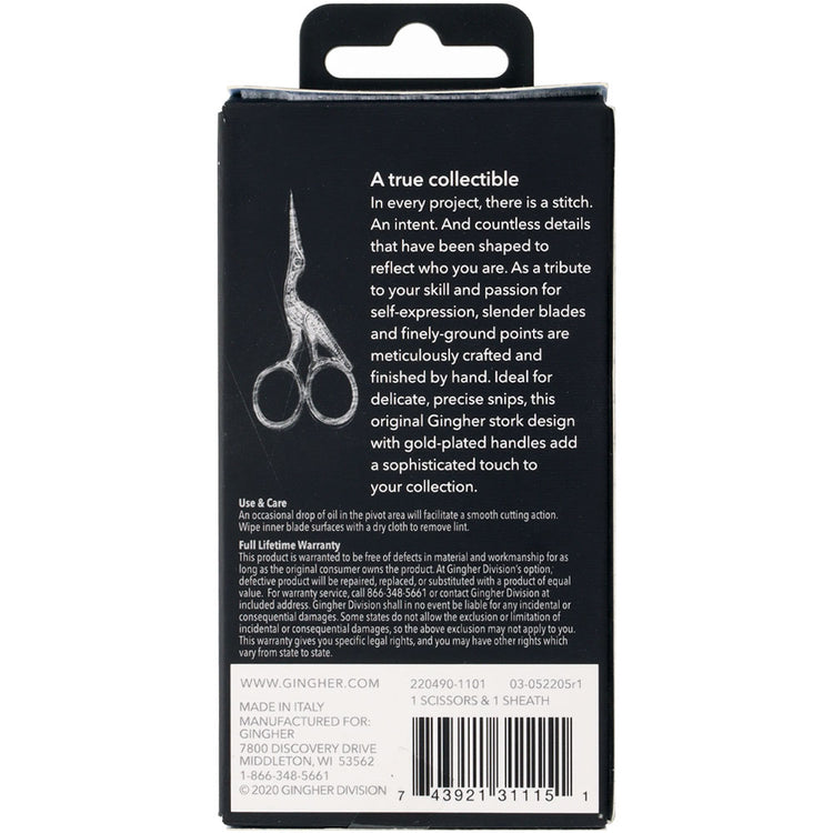 Gingher 3 1/2" Stork Embroidery Scissors Details