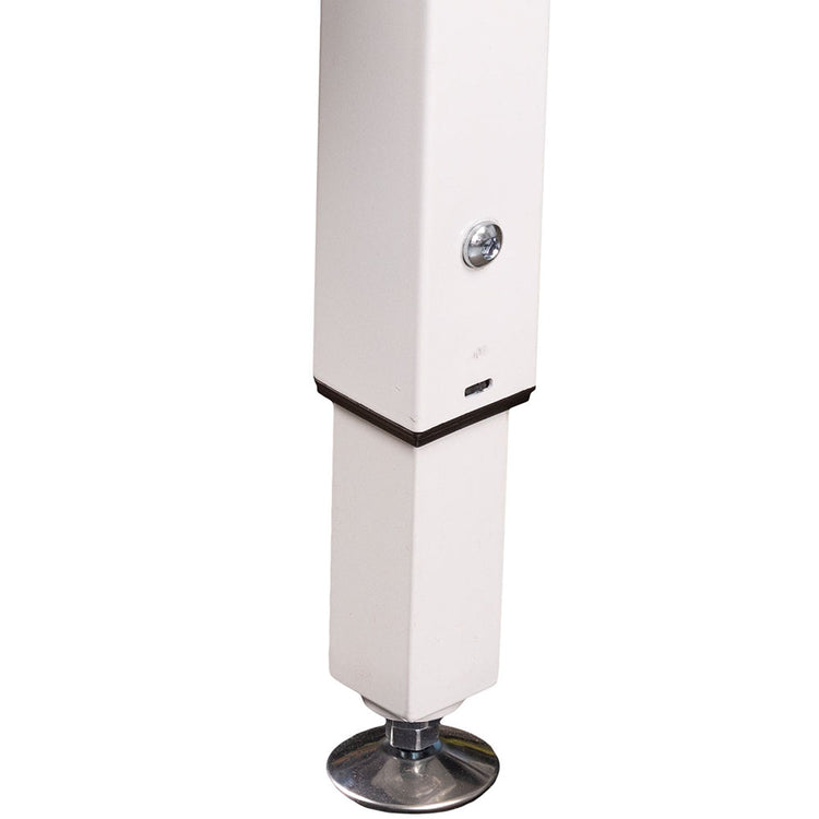 Quilt sitting down or standing up using the adjustable legs, which start out at 27" and can be raised to a max of 35". This feature allows you to quilt in whichever position is more comfortable. Each leg also has its own leveling feet, so you can easily quilt on carpet or hardwood. To get the most out of your frame, set all legs to the same height and tailor the feet for precise adjustments.