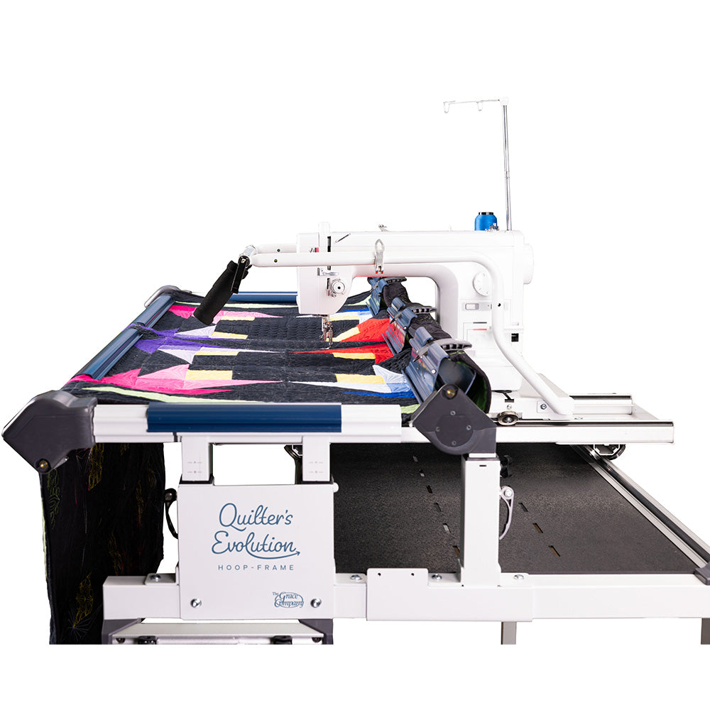 Grace is constantly listening to customer feedback and coming up with innovative ways to improve the quilting experience. The Quilter's Evolution Hoop Frame is the latest new and improved offering to the sewing world. This Evolution Hoop Frame allows you to quilt any size project, even if you are limited on space. You can use any of Grace's Q'nique mid/longarm machines and some domestic machines (you will need the carriage for home sewing machines) on the Evolution Hoop Frame. Convert the traditional hoop-style frame to a five-foot rolling rail frame by attaching a hand wheel to the take-up rail. With the new Quilter's Evolution Series, sewists can reach the heights of their quilting dreams. They'll be able to utilize the best professional frame features without sacrificing space by using the Evolution Hoop-Frame. And when quilters have evolved to wanting a larger frame, they can effortlessly ascend to the Evolution Elite Rolling Rail Frame without investing in a whole new frame set-up.