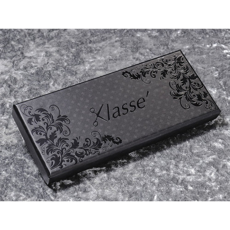 Klasse's Black Embroidery Scissor and Tape Measure Gift Set is the perfect gift for any sewist or crafter. Each piece is piano black with floral designs made from silver foil. In the decorative storage box, you will find 4-1/2-inch fine point embroidery scissors made with quality stainless steel and a 60-inch retractable tape measure with a magnetic back.