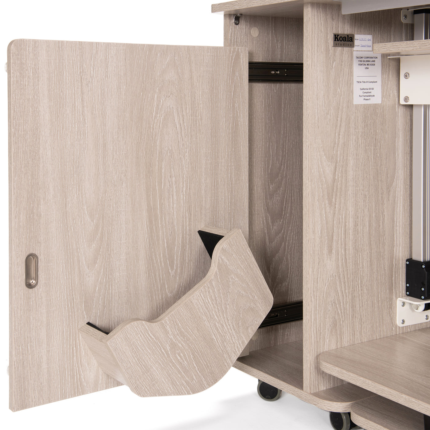 Simplifying embroidery setup and storage, the Embroidery Module Closet on the Koala All-In-One Embroidery Studio gives your embroidery arm a secure place when it’s not in use. Instead of searching for space or leaving the module out on a table, you can store it neatly inside the cabinet, helping protect it from dust, bumps, and accidental damage. Conveniently positioned for quick access, this built-in closet makes switching between sewing and embroidery faster and more efficient. Keeping the embroidery module close at hand streamlines your workflow, reduces clutter in your sewing room, and lets you focus on what matters most—creating beautifully stitched projects with ease.