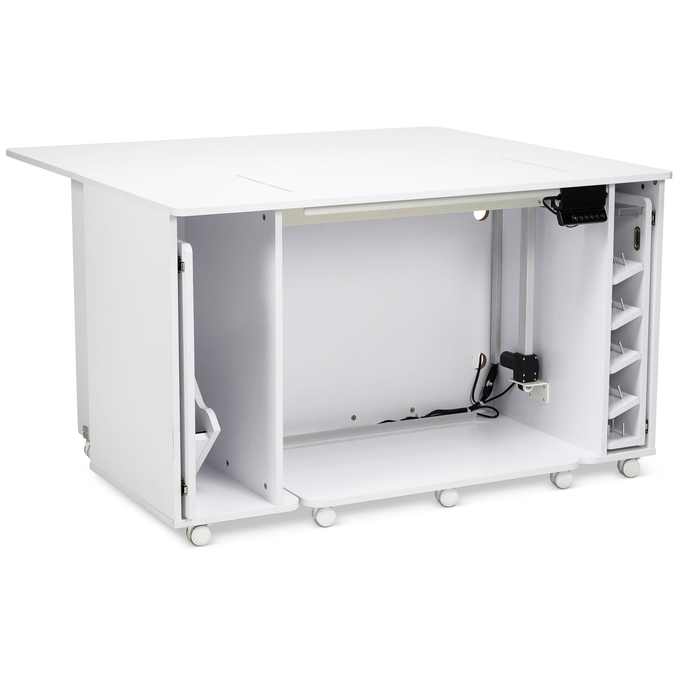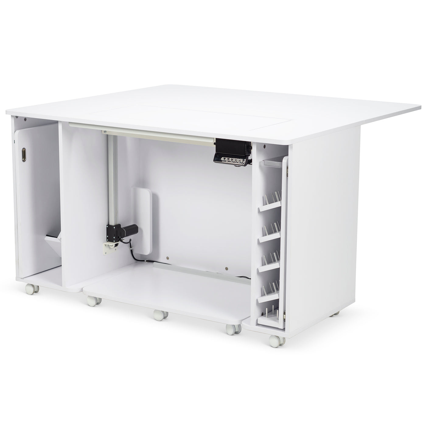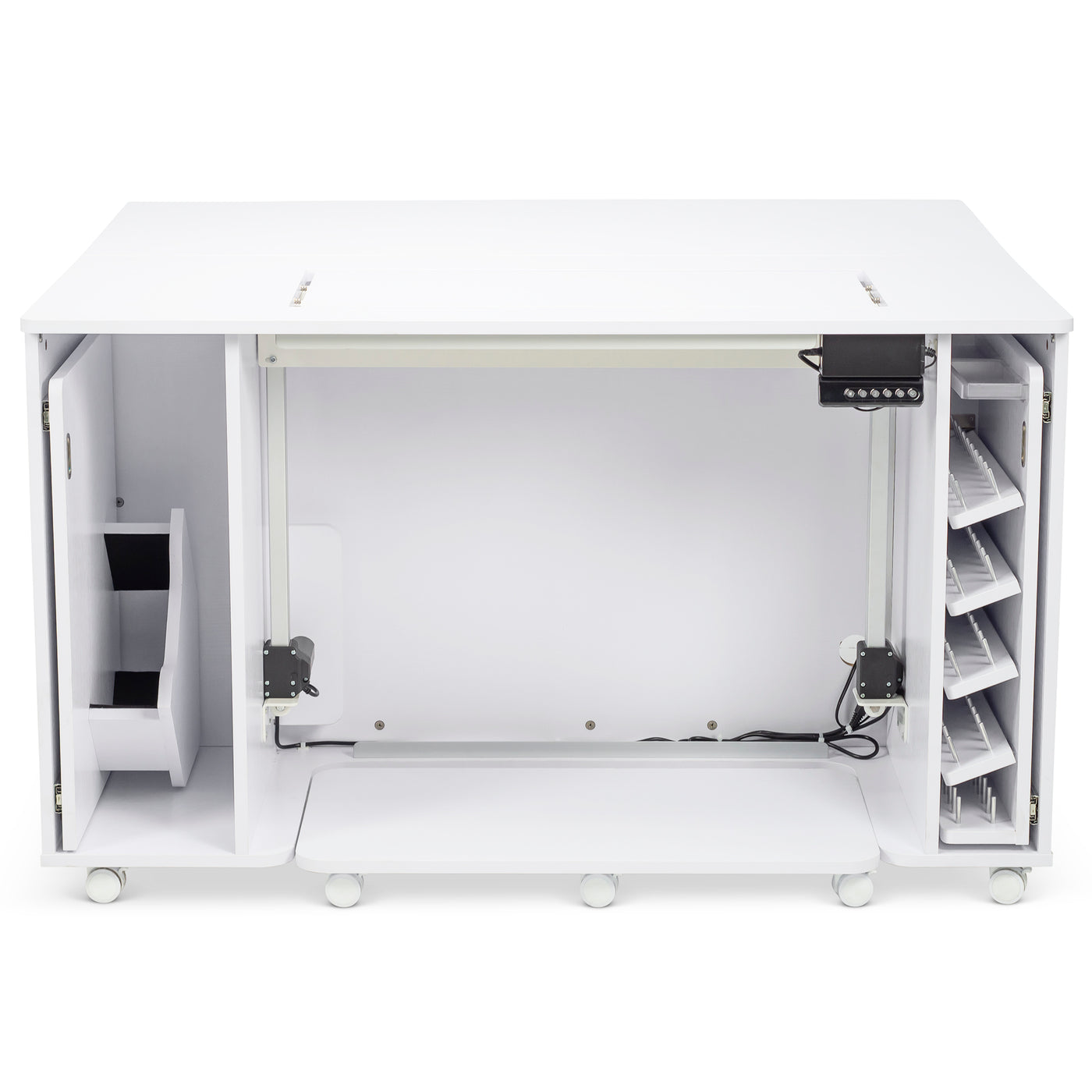 Built for stability and everyday reliability, the electric glide lift supports your machine securely while operating quietly and smoothly. By promoting proper posture and reducing fatigue, it turns your sewing cabinet into a truly ergonomic workspace—so you can focus on precision, creativity, and enjoying every stitch.