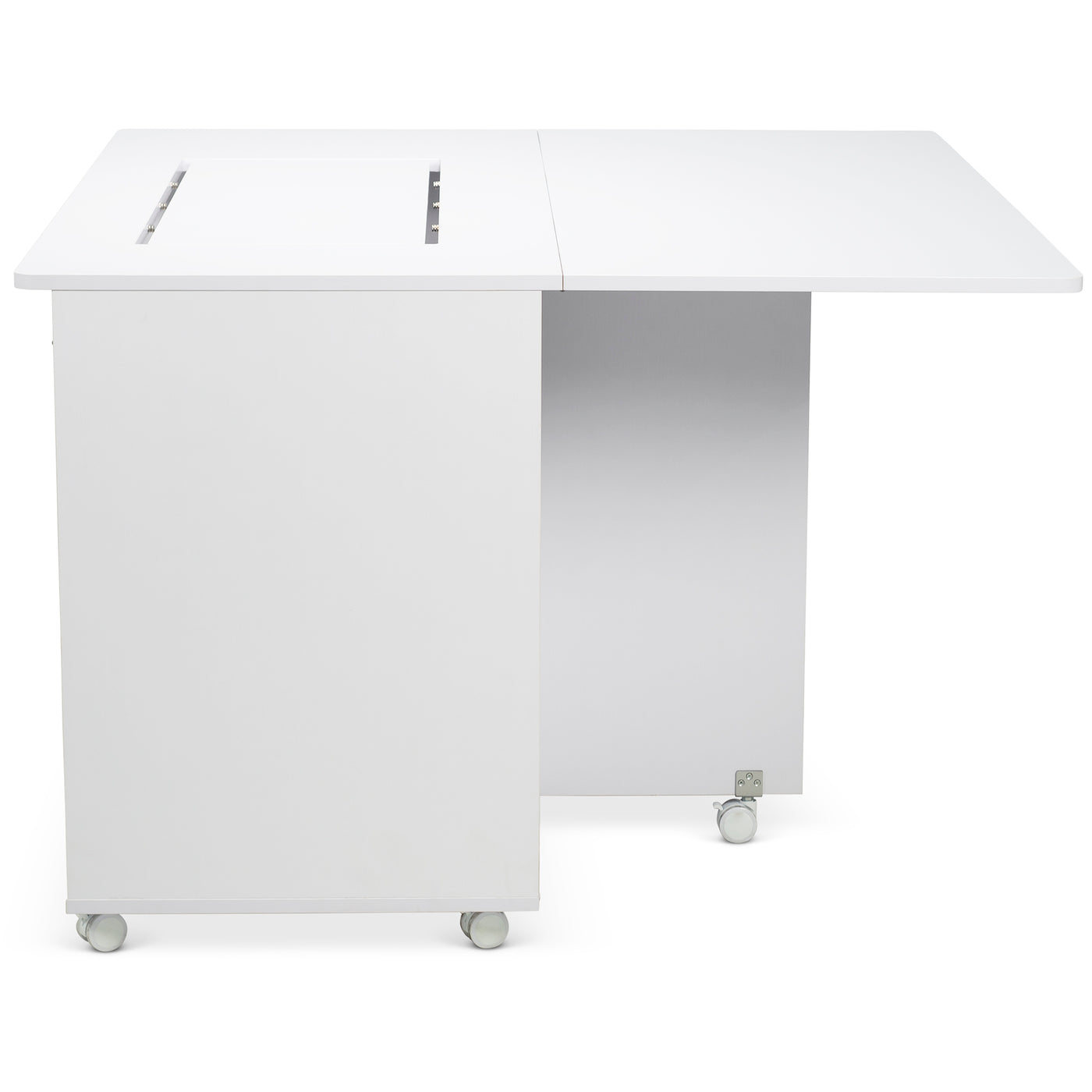 Enhance your sewing experience with an optional acrylic machine insert, custom-made to create a perfectly flush work surface between your machine and the cabinet. This tailored insert provides a smooth, level transition that supports your fabric as you sew, helping prevent snags and uneven stitches — especially useful for quilting and precision piecing.