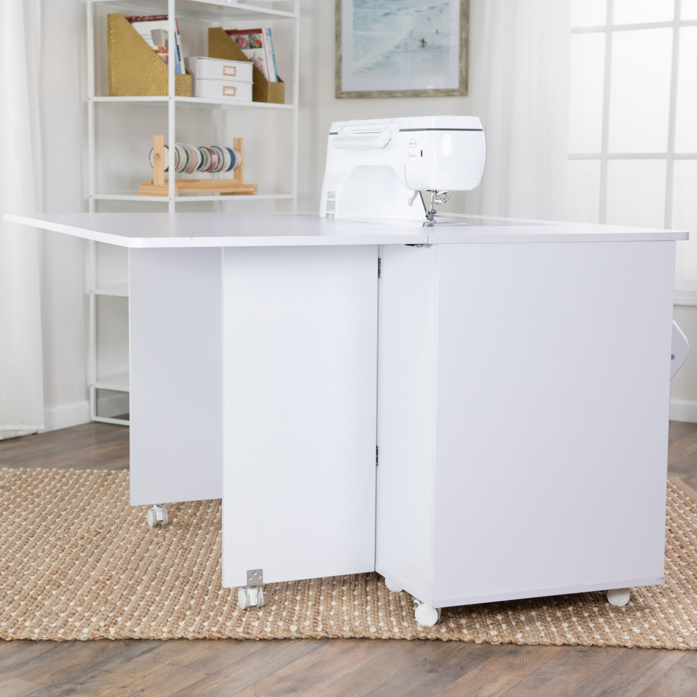 Built with real-world sewing in mind, the expandable workspace opens up smoothly to create extra room for managing bulky quilts, oversized embroidery hoops, or long runs of fabric. This added support helps keep projects level as they move through the machine, reducing drag and allowing for smoother, more precise stitching—especially helpful during detailed embroidery or free-motion work.