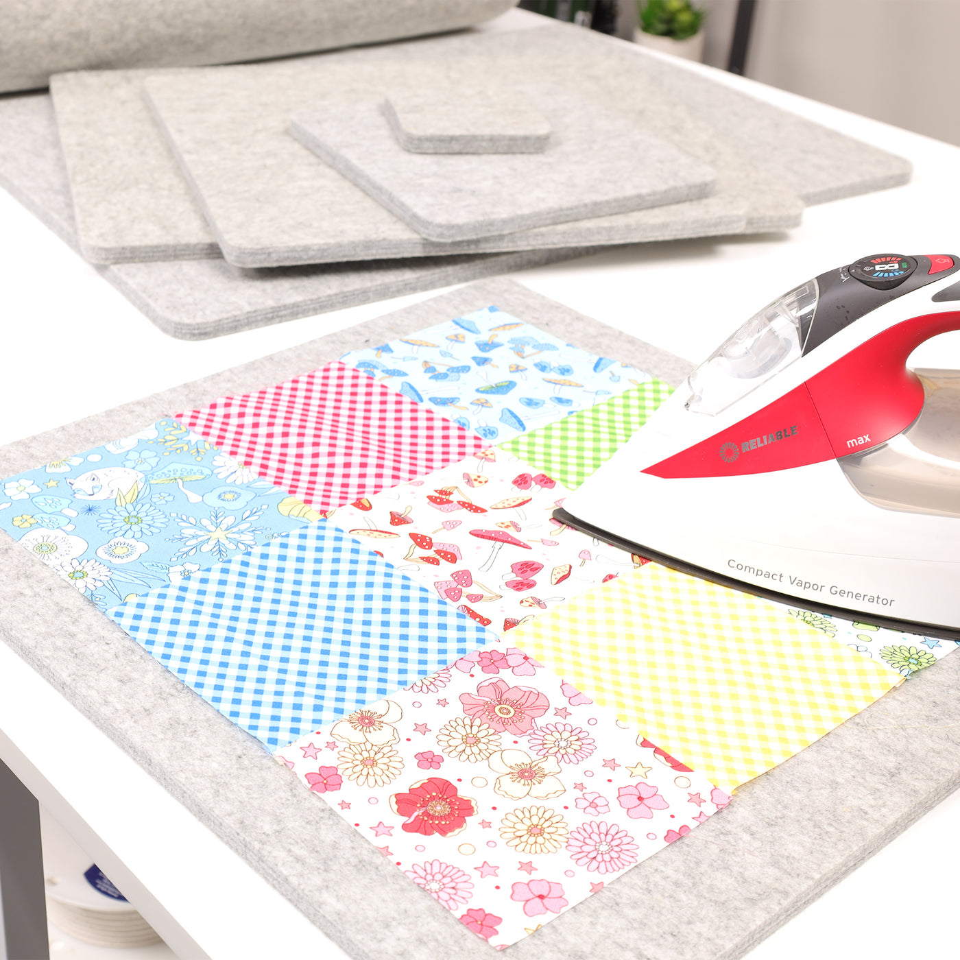 A wool pressing mat offers remarkable advantages that can elevate the quality and efficiency of your sewing. Because wool naturally retains heat and moisture, it creates a steam-like effect that presses fabrics from both sides at once — reducing pressing time while achieving crisp, professional results. The dense, resilient texture of felted wool absorbs pressure evenly, allowing seams to lie flat without leaving shine or indentations. Its gentle surface also grips fabric securely, preventing shifting or stretching as you press, which is especially valuable for precision piecing and curved seams. Beyond quilting, wool mats are excellent for embroidery, appliqué, and garment sewing, providing consistent results and a smoother workflow for any project.